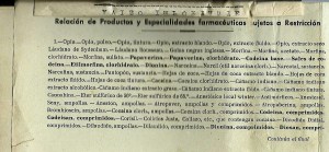 Relación de Estupefacientes del año 1918 que necesitaban receta especial oficial con control de la Inspección de Sanidad que pertenecia al Ministerio de la Gobernación de España.