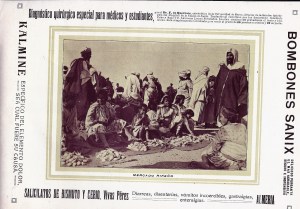 Lámina de Costa del Rif de 1914 con anuncios publicitarios de medicamentos. Pertenece a la colección particular de iconografías de Tomás Cabacas