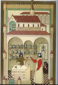 Es una lámina de la serie “La ilustración del medico a traves de sus epocas”. Realizada por Vsvolode Nicouline y distribuida por el Laboratorio Carlo Erba de España con publicidad de sus productos a los médicos de España durante los años 1965-1970. Publicitan sobre todo su famoso preparado de “Chemicetina” que era succinato de cloranfenicol