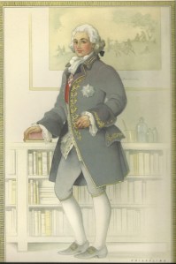 El traje del Médico Francés del Siglo XVIII consistía en una larga casaca de paño gris con bordados de oro y dos hileras de botones de metal dorado. Los puños eran de terciopelo negro con botones de oro. Los médicos llevaban medias negras y los cirujanos medias rojas. Algunos llevaban peluca empolvada y la solapa de la casaca de encajes.
