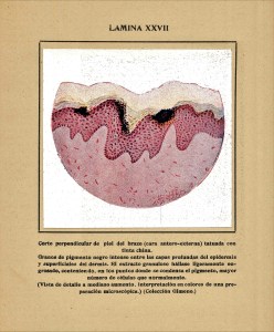 Corte de piel de un tatuaje con tinta china del Dr. Gimeno. Realizada y publicada en el año 1916.
