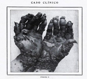 Sifilides Gomosas ulceradas de ambas piernas, curadas con navarsenobenzol e inyecciones intravenosas en el Hospital de San Juan de Dios de Madrid. Clinica del Dr. Covisa en el año 1916