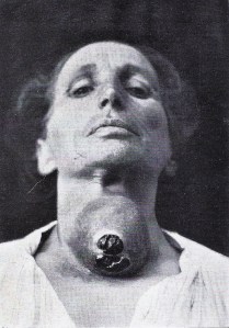 Carcinoma del Tiroides avanzado. Caso clinico del Hospital de San Carlos de Madrid. Clinica del Dr. Valcorba. Se realizó extirpación parcial.