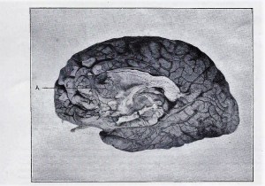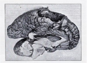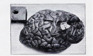 Lesión cerebral producida por una bala en el hemisferio derecho