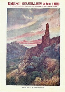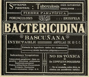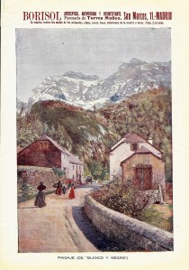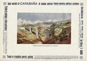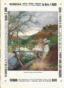 Lámina con paisaje y anuncio publicitario de medicamentos que se realizaba en Revistas Médicas de la época. Este medicamento se comercializaba y se vendía en las Farmacias de España en el año 1915