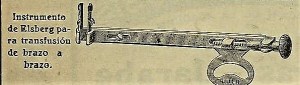 Instrumento de Elsberg para la transfusión de brazo a brazo