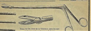 Pinza de Petit de la Vileléon para la operación de pulmones o busca de proyectiles