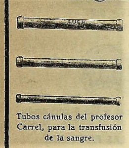 Cánulas de Carrel para la transfusión de sangre