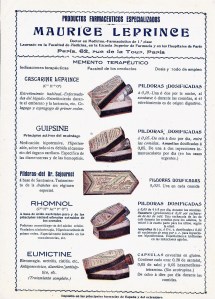 Medicamentos del laboratorio Maurice Leprince comercializados en España en el año 1916