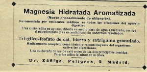 Magnesia Hidratada Aromatizada. Comercializada en España en el año 1916