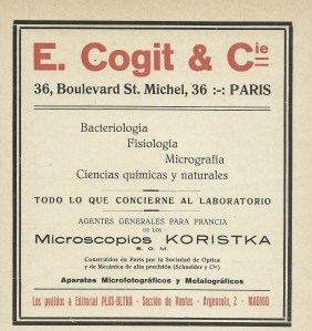 Publicidad del Laboratorio E. Cogit en España hace 100 años