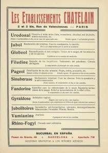 Medicamentos del Laboratorios Chatelain comercializados en España hace 100 años
