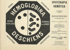Hemoglobina Deschiens medicamento comercializado en España en el año 1920