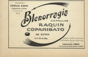Capsulas Raquin Copamibato. Comercializadas en España en 1920