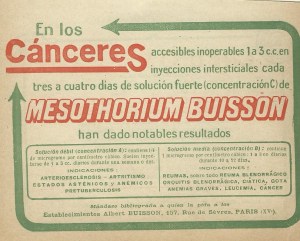 Mesothorium Buisson. Comercializado en España en el año 1922