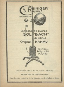 Lampara de cuarzo «Sol Bach». Fabricada por la Casa «Reiniger» Comercializada en España en el año 1922