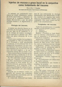 Articulo sobre Injertos de mucosa en la conjuntiva como tratamiento del tracoma