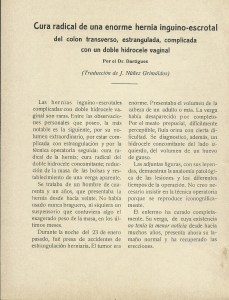 Articulo sobre el tratamiento de la Hernia inguino escrotal del colon transverso, estrangulada, complicada con un doble hidrocele vaginal