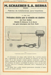 Perforadora eléctrica para la extensión con alambres fabricada por M. Schaerer S.A. Berna (Suiza)