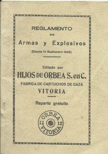 Reglamento de Armas y Explosivos editado por el fabricante de cartuchos de caza «Hijos de Orbea»