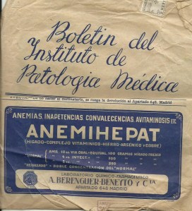 Sobre del envío del Boletin del Instituto de Patologia Médica.