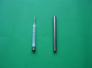 El cilindro metálico tiene mide 9 cms de largo por 1 de ancho.