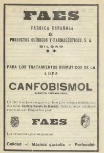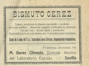 Bismuto Gerez. Medicamento comercializado en España en 1939