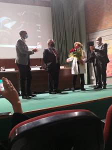 Entrega de regalo de Dña. Maria Ibañez en nombre del Colegio de Medicos de Badajoz