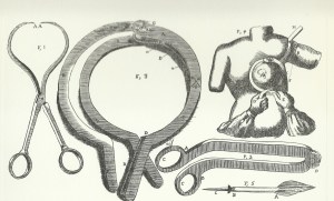 Grabado de «Instituciones Chirurgicas» de L. Heister. Lamina V de la edición de Madrid. Imprenta P. Martin. Año 1775