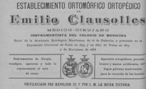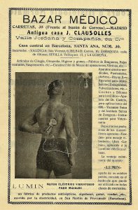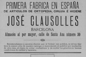 Sucursal del Fabricante «J. Clausolles» en Valencia. Se rotulaba la tienda «Bazar Medico» y estaba situada en la calle Vicente, 6 de Valencia