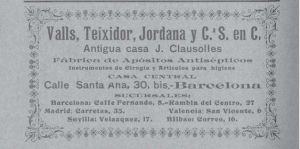 La nueva empresa y deseando la expansión de la firma compran la fábrica de material quirúrgico de la empresa “Valls, Teixidor, Jordana y cia” que en 1909 había realizado la construcción de una fábrica en la antigua carretera de Mataró. (actualmente el 483 de la calle Pere IV de Barcelona, en el distrito de Sant Martí de Provençals. Y la empresa comienza a llamarse “Fabrica Valls, Teixidor y Jordana” con el subtítulo “Antigua casa J. Clausolles”