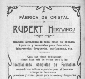 Fábrica de Cristal Rubert y Hermanos era una empresa dedicada a proveer de todas clases de envases y accesorios a las farmacias, droguerías, perfumerías, laboratorios y establecimientos sanitarios.