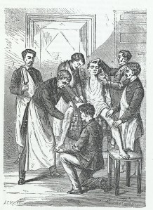 Grabado de Amputación de una pierna en 1880
