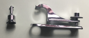 La pinza o Clamp Gomco con la campana metálica que protege al glande. La campana es la pieza situada a la izquierda