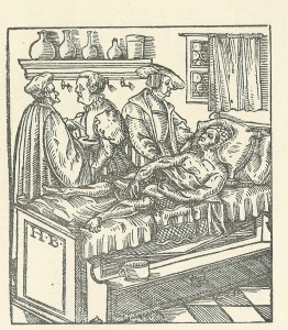 Es un grabado en madera de boj de Hans Burgkmair del libro «Ain nutzlich unnd norwendigs Artzney Buchlin» de Bartholomeus Vogthers.