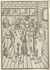 Grabado en madera de boj de Panurgo en una sala del Hospital de Saint Louis de París