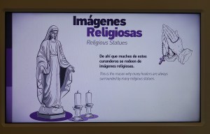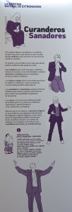 Se muestran en esta sala medicinas alternativas. Curación mediante plantas. Fisioterapia. Curanderismo.