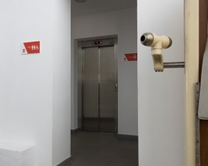 Ascensor en el Patio de la planta baja del Museo de Historia de la Medicina. Zona expositiva del Museo