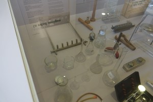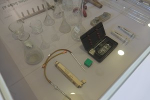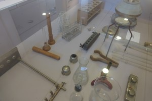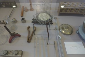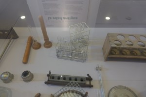 Instrumentos de laboratorio de Análisis de Farmacia de la Sala de Farmacia en el Museo de Historia de la Medicina en Zafra