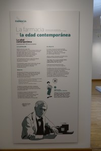 En esta sala se muestra la historia y la evolución de la Farmacia a lo largo del tiempo mediante los instrumentos, medicamentos, aparatos. Paneles con la Historia de la Farmacia y la historia del vademécum médico.