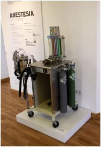 Vitrina de la anestesia de la Sala de la Revolución de la Medicina. Sala del Siglo XIX en el Museo de Historia de la Medicina en Zafra