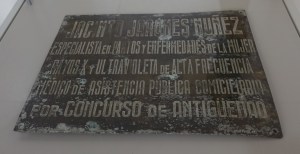Placa de la puerta del médico D. Jacinto Jarones Nuñez que fue el propietario del aparato de Rayos X Sánchez