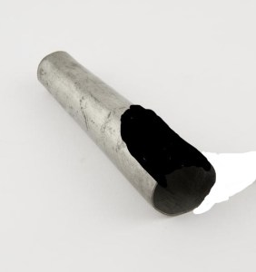 Posteriormente viendo la dificultad para visualizar el cuello del utero lo manda construir en tubo de estaño. Este especulo tiene dos diámetros, el externo que mide 5 cms de diámetro y está cortado en bisel o pico de flauta, y el interno mide algo menos 4 cms y el borde es un cordón de estaño para no dañar la vagina. El estaño es de color blanco y refleja la luz con lo que consigue mejor visualización del cérvix uterino.