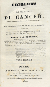 En los años 1816 a 1829, J. Recamier realiza tratamientos del cáncer de cuello de utero utilizando pasta de arsénico, nitrato de plata, nitrato de mercurio, compuestos de potasio, creosota, muriato de oro y aplicaciones con el cauterio.