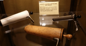Fotografía de la vitrina donde se encuentra el espéculo de J. Recamier del Museo de Historia de la Medicina de Paris