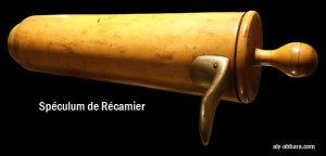 J. Recamier construye su primer especulo en 1801, lo construye de hierro blanco, un material duro y frágil de un color casi blanco por su componente de cementita. Este espéculo es cilindrico y mide 12,70 cms. de largo y diámetro unos 5 cms.