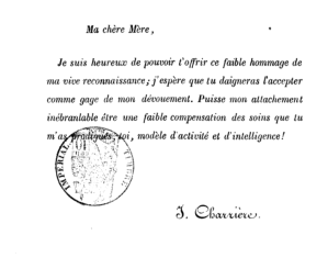 Sobre su madre le dedica su primer catalogo y le escribe la siguiente carta: