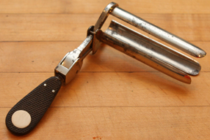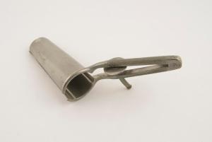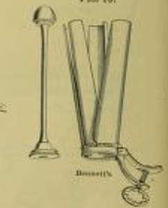 J. Weiss inventa y fabrica un espéculo en principio es de dos palas. En el catálogo de 1831 lo presenta y fabrica. En este modelo puede comprobarse la forma del especulo y la marca grabada en el centro. Puede verse “Weiss” en la rama superior y “London” en la posterior, es la marca de troquel del fabricante y lugar de fabricación.