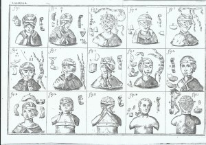 Lámina I. Trata de la clase de vendas. Tiene 4 franjas que le llama «estampas»
