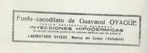 Guayacol Oyagüe Deja un comentario Guayacol Oyagüe Publiciad del medicamento Guayacol Oyagüe en el año 1933